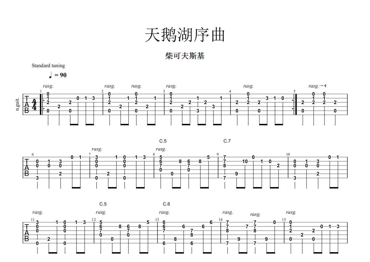 柴可夫斯基《天鹅湖序曲》吉他谱 - 独奏六线谱