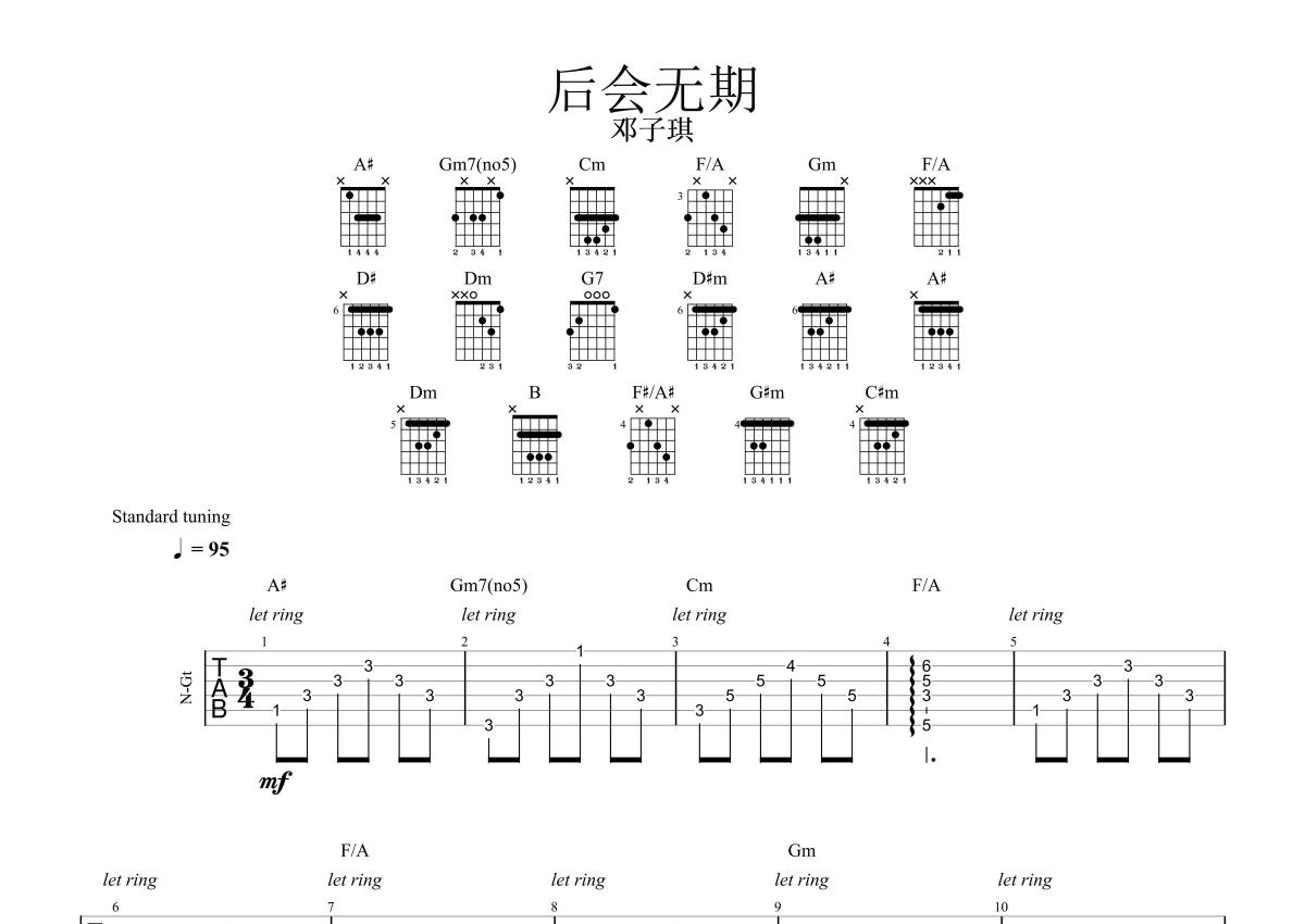 邓紫棋《后会无期》吉他谱 - 弹唱六线谱 - GTP谱