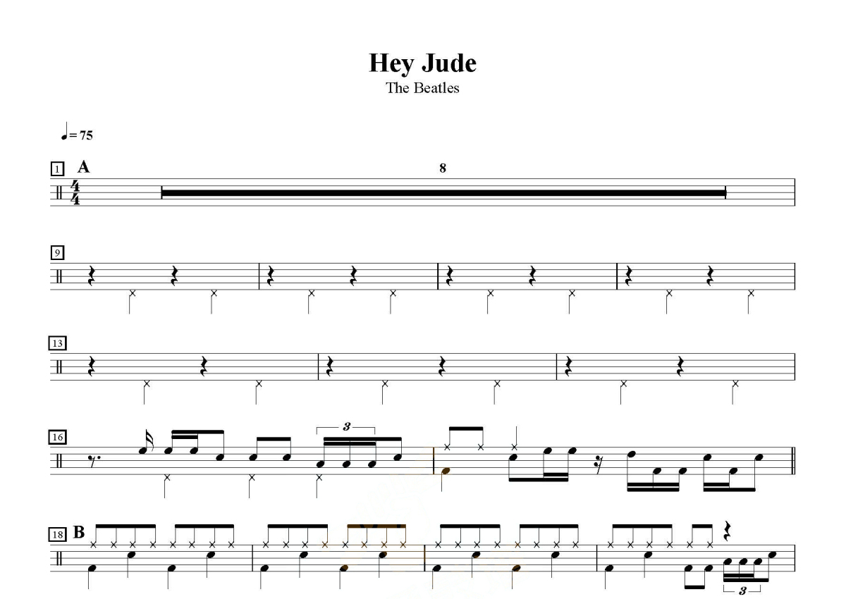 The Beatles《Hey Jude》鼓谱 - 架子鼓谱