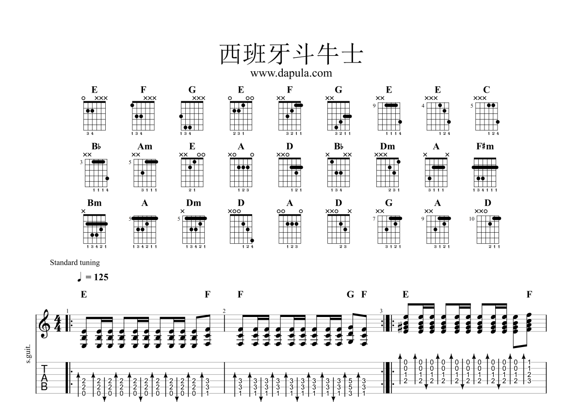 经典名曲《西班牙斗牛士》吉他谱 - 独奏六线谱 - 带五线谱版本