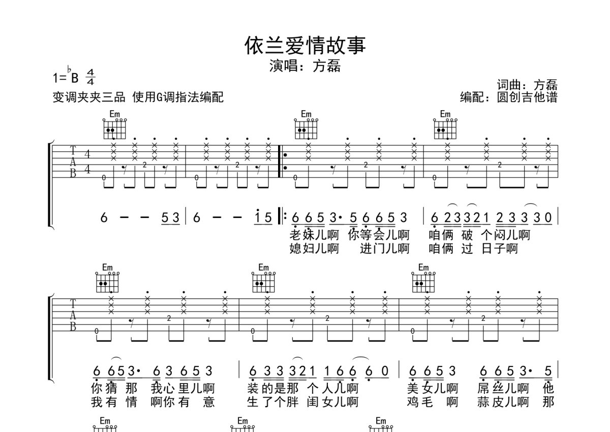 方磊《依兰爱请故事》吉他谱 - G调弹唱六线谱