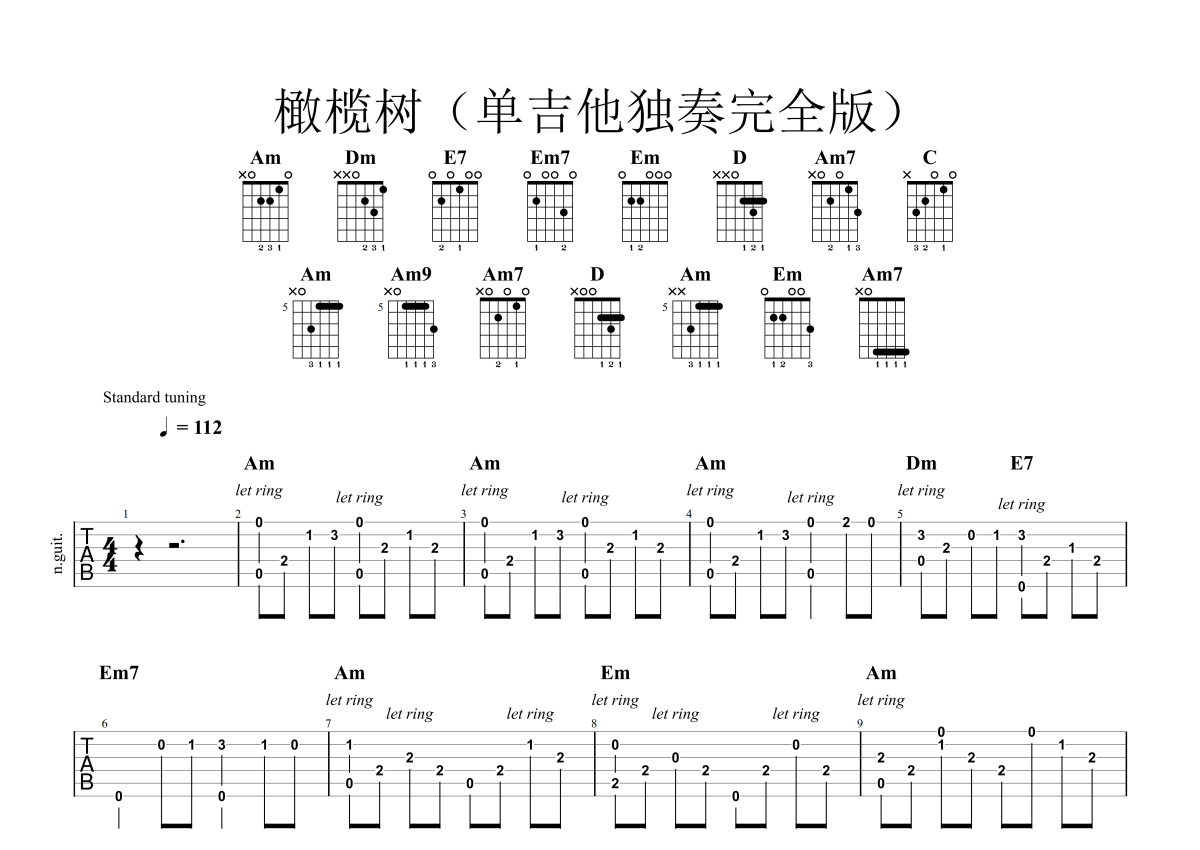 齐秦/齐豫《橄榄树》吉他谱 - C调独奏六线谱 - 单吉他独奏完全版
