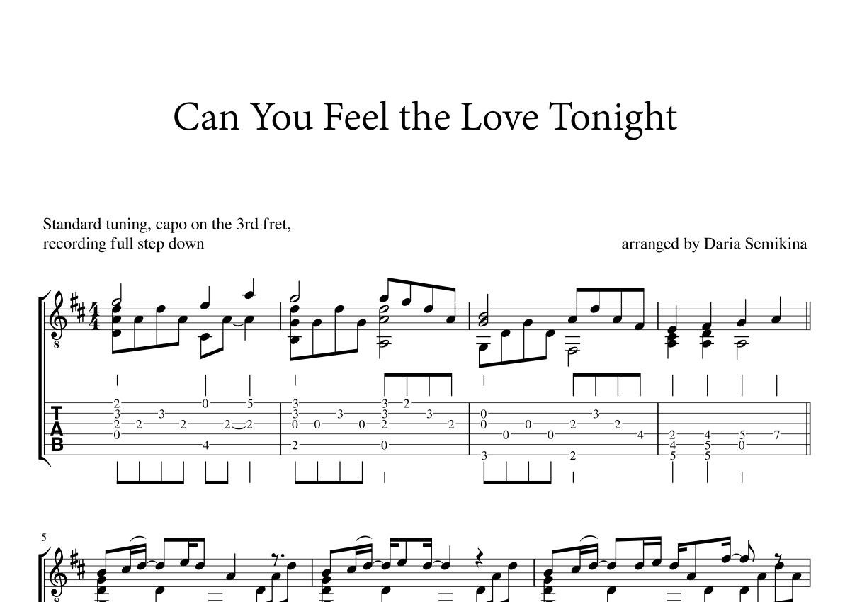 艾尔顿·约翰《Can You Feel the Love Tonight》吉他谱 - 独奏六线谱 - 《狮子王》电影原声