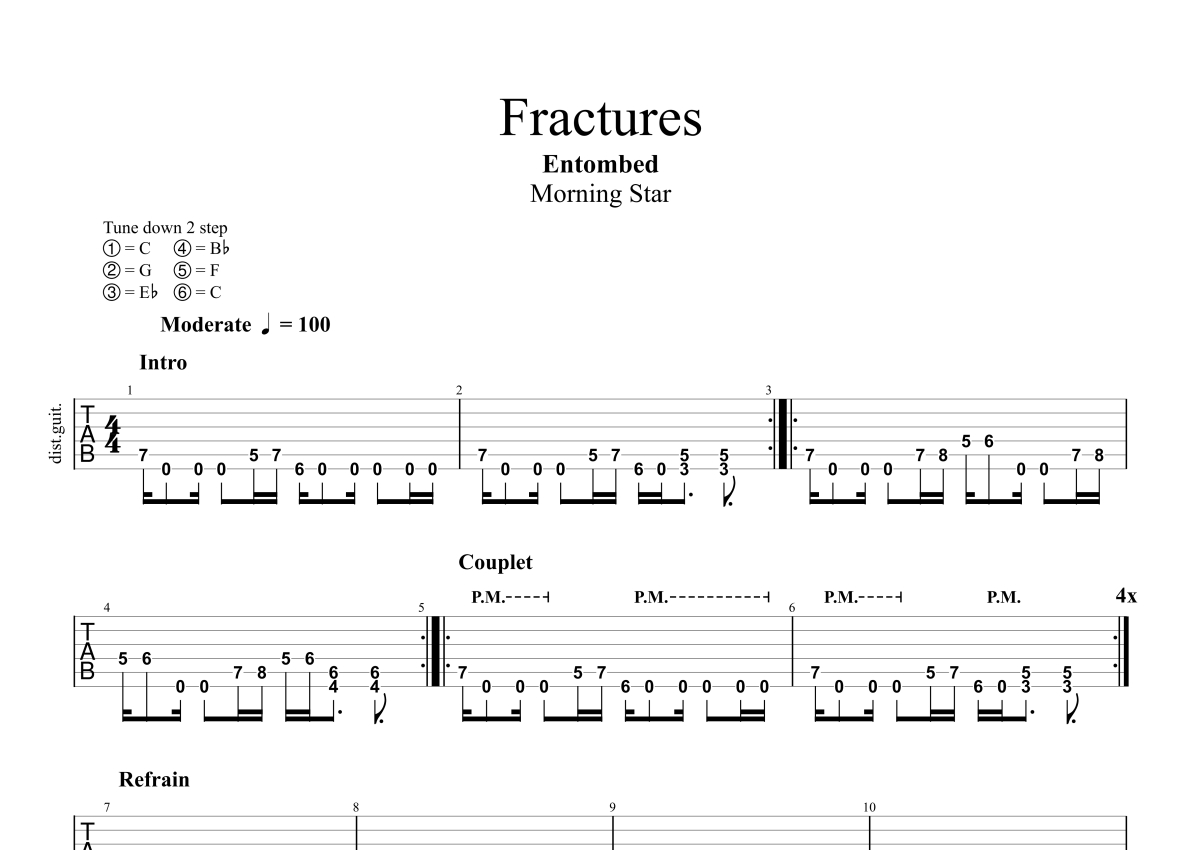 Entombed《Fractures》吉他谱 - C调独奏六线谱