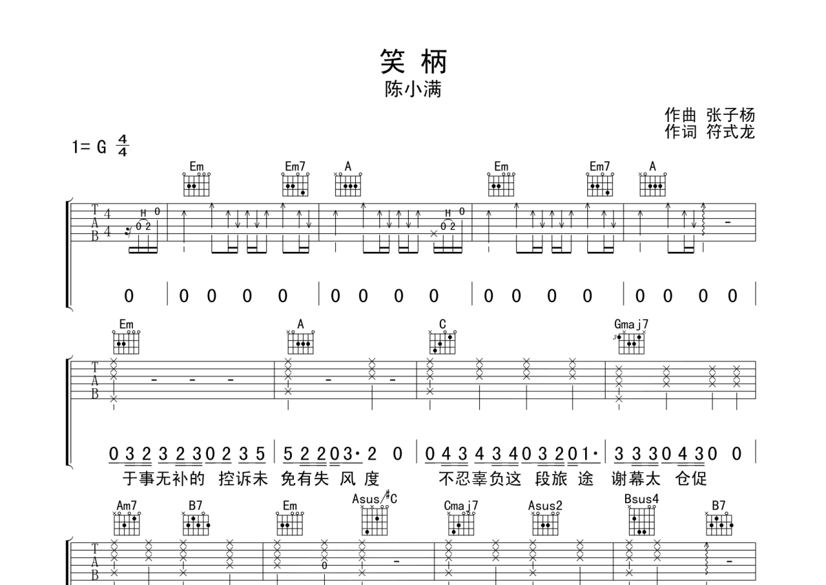 陈小满《笑柄》吉他谱 - G调弹唱六线谱