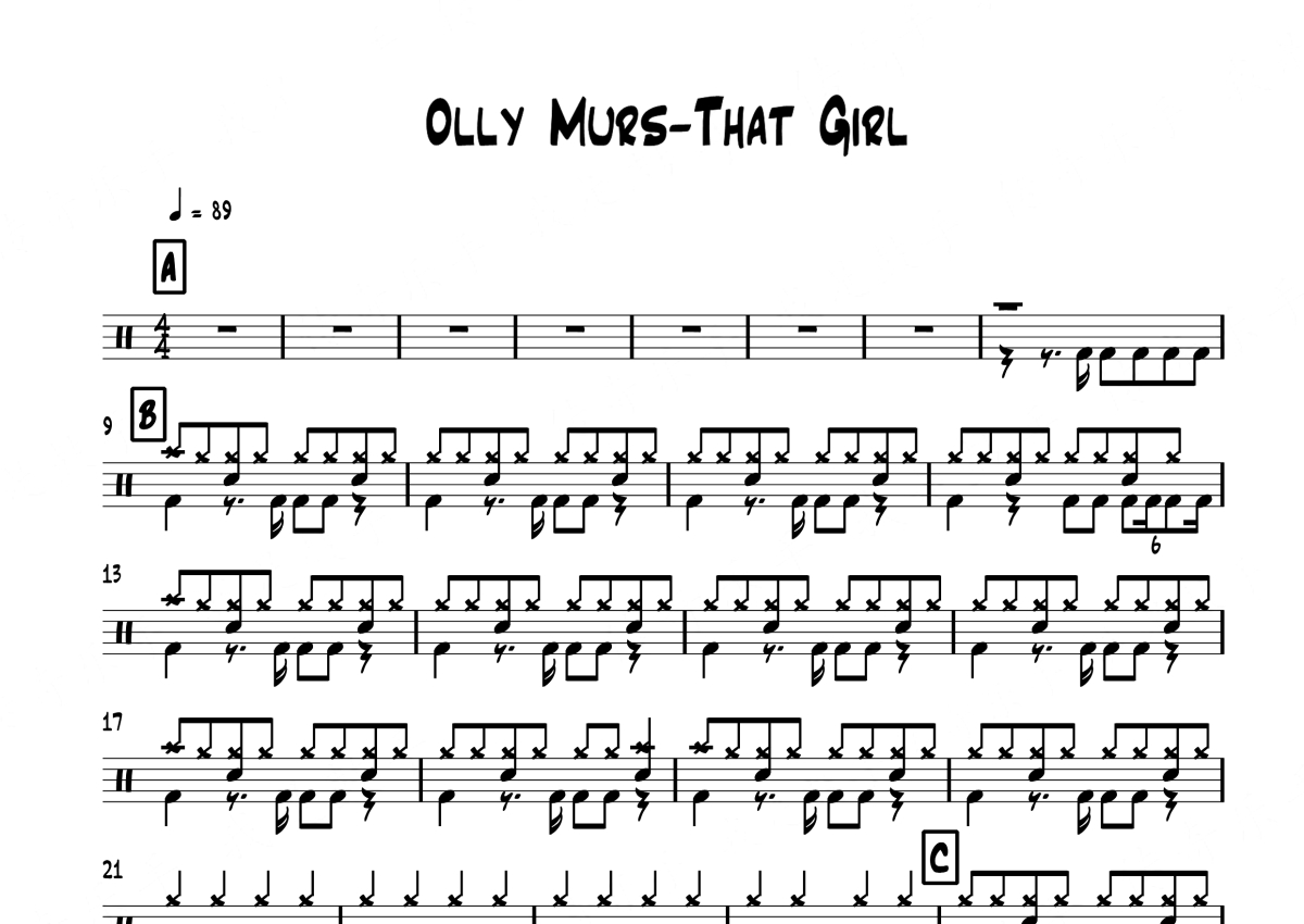 olly murs《That Girl》鼓谱 - 架子鼓谱