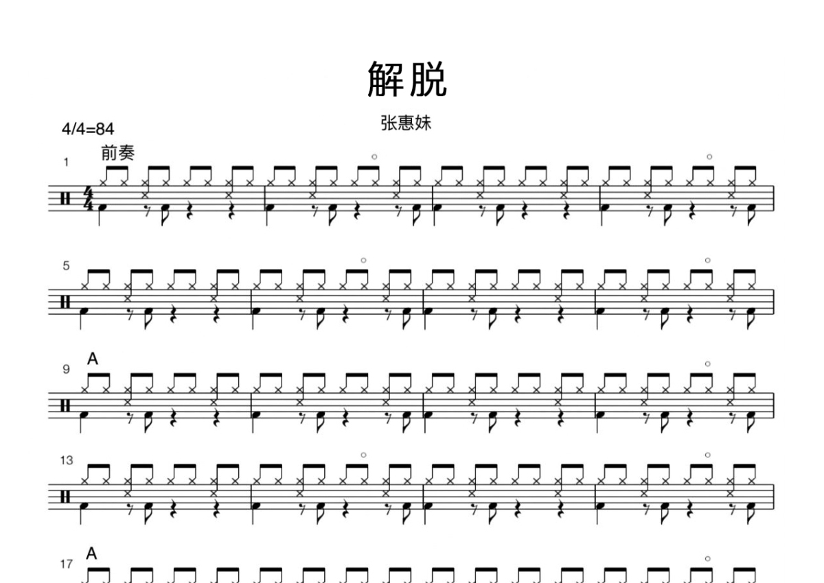 张惠妹《解脱》鼓谱 - 架子鼓谱