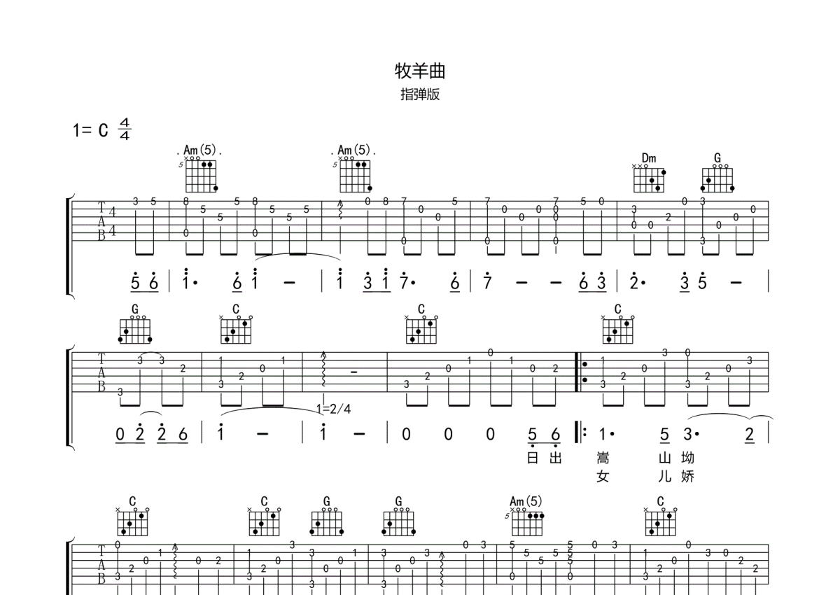 郑绪岚《牧羊曲》吉他谱 - C调独奏六线谱