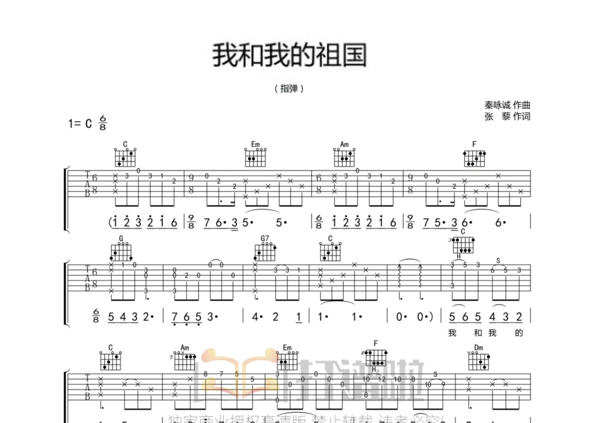 李谷一《我和我的祖国》吉他谱 - C调独奏六线谱