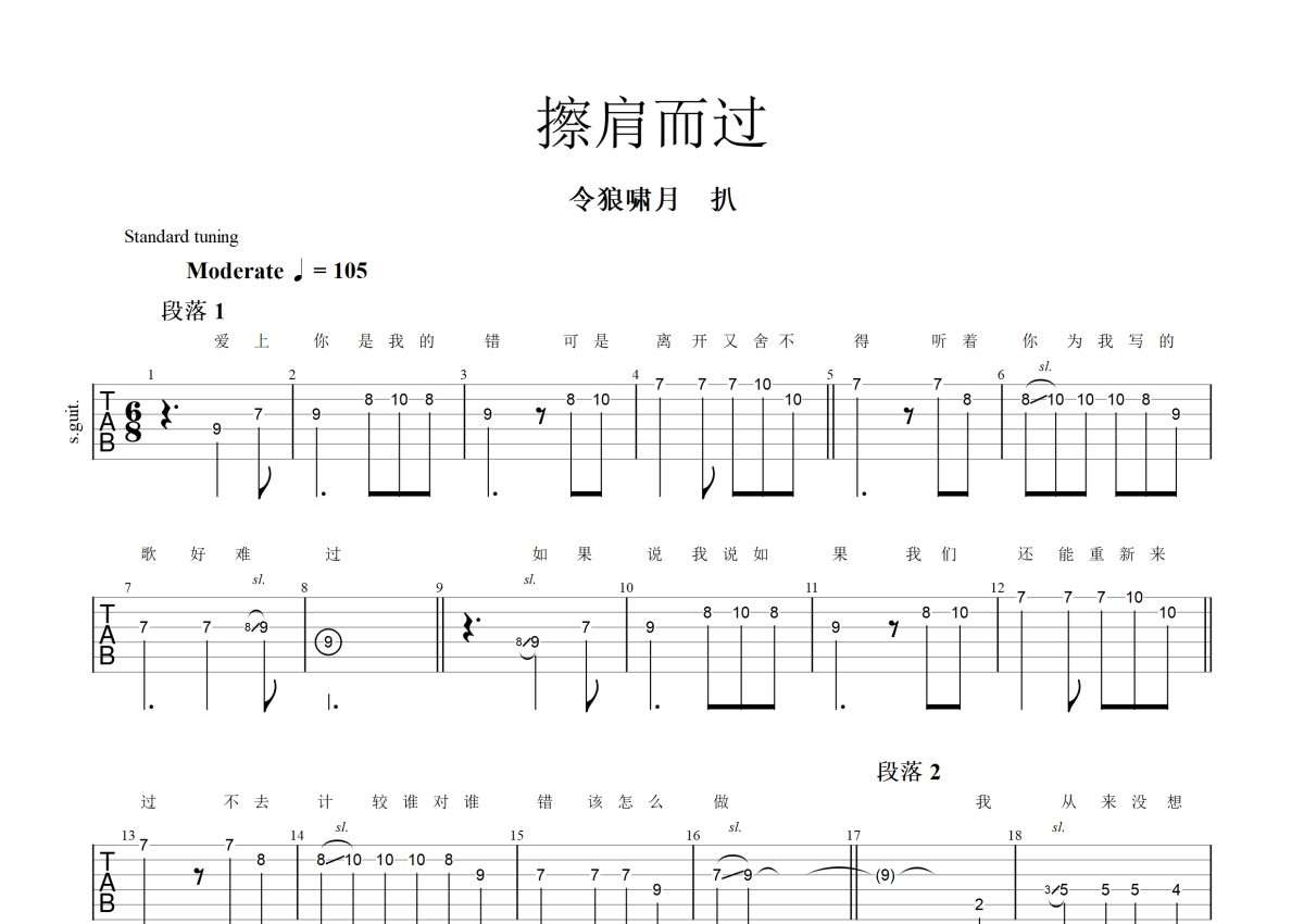 《擦肩而过》是宇桐非演唱的一首歌曲,本吉他谱采用的是C调指法编配,这份吉他谱共有三张高清图谱,图谱由 @玉帝哥哥 编配上传,图谱使用六线谱编配,曲谱配备了相关的音频提供试听,使用这份擦肩而过吉他谱,可以让你更加方便地掌握这首歌曲的演奏技巧,快来尝试吧。宇桐非《擦肩而过》吉他谱_C调吉他独奏谱。