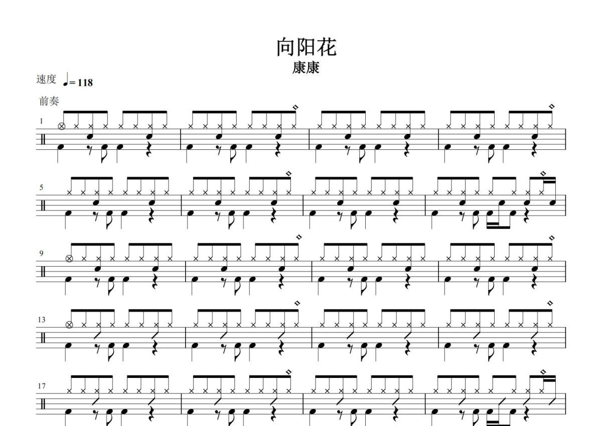 康康《向阳花》鼓谱 - 架子鼓谱 - 康康版