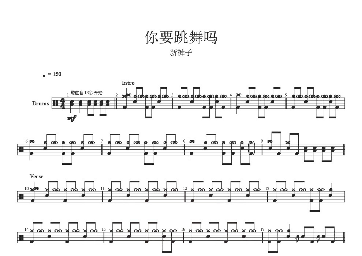 新裤子乐队《你要跳舞吗》鼓谱 - 架子鼓谱