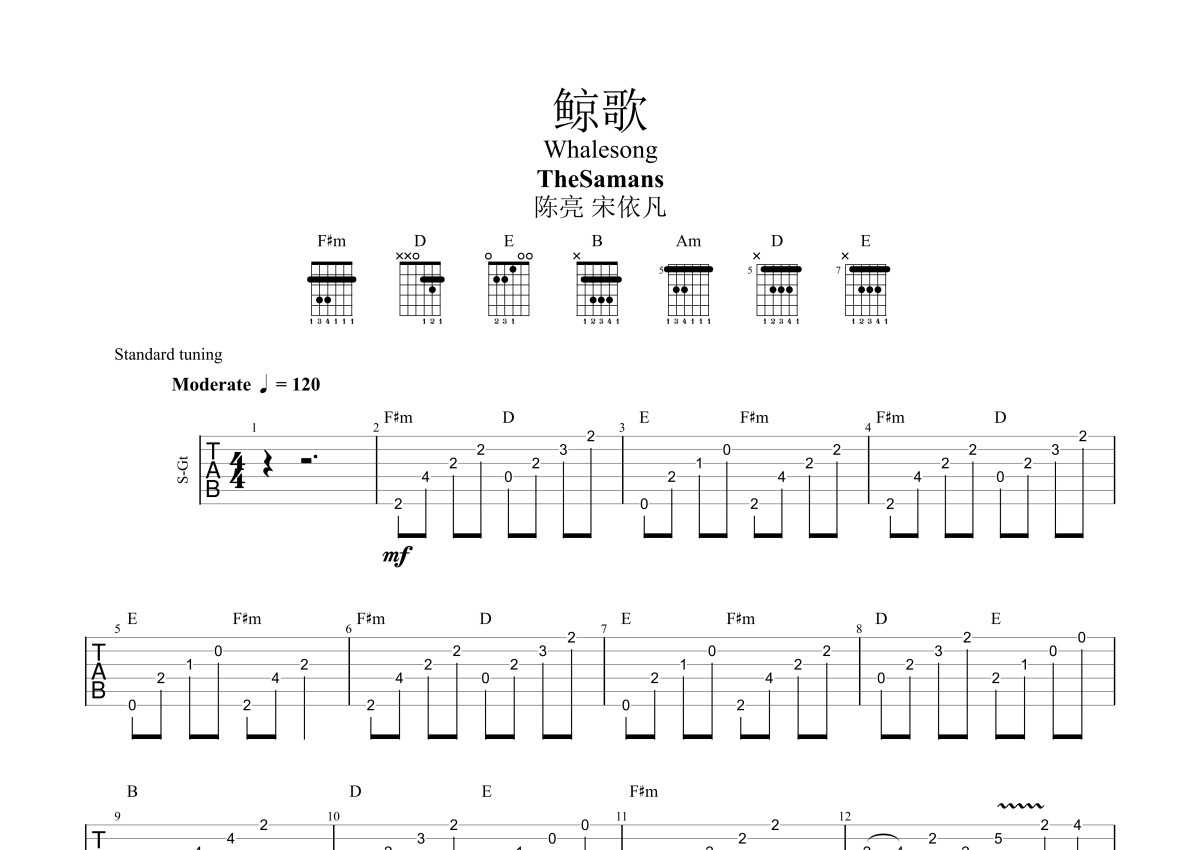 陈亮/宋依凡《鲸歌》吉他谱 - 独奏六线谱