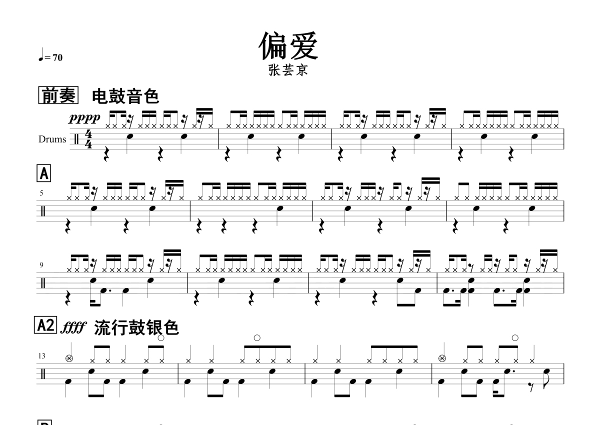 张芸京《偏爱》鼓谱 - 架子鼓谱