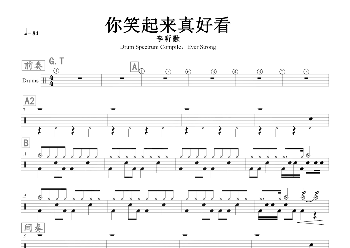 李昕融《你笑起来真好看》鼓谱 - 架子鼓谱
