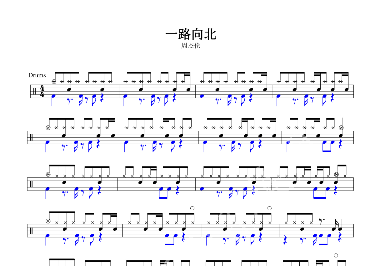 《一路向北》是周杰伦演唱的一首歌曲,这份鼓谱共有两张高清图谱,图谱由 @玉帝哥哥 编配上传,图谱使用五线谱编配,使用这份一路向北架子鼓谱,你将能够轻松地敲打出这首周杰伦的一路向北,快来尝试吧。《一路向北》是周杰伦演唱的一首歌曲,由周杰伦作曲,方文山作词,蔡科俊编曲。该歌曲是周杰伦主演的电影《头文字D》的插曲,于2005年6月24日随“JⅢ”MP3随身听的推出而发行,最早收录于周杰伦在2005年8月在日本发行的精选集《InitialJ》中,后收录于周杰伦在2005年11月发行的专辑《十一月的萧邦》中。2006年,该歌曲获得了第六届百事音乐风云榜颁奖盛典最佳影视歌曲提名。