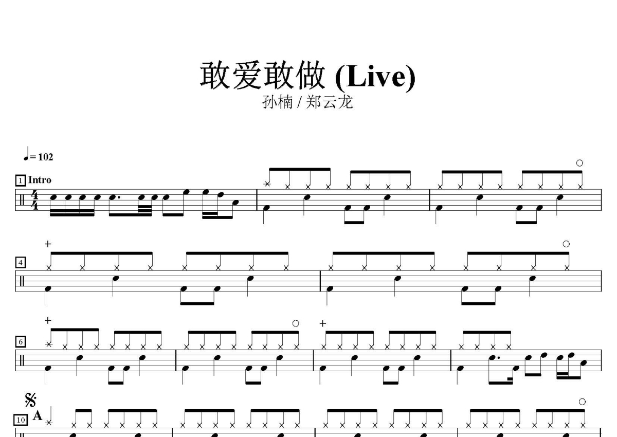 孙楠 / 郑云龙《敢爱敢做》鼓谱 - 架子鼓谱 - Live版本