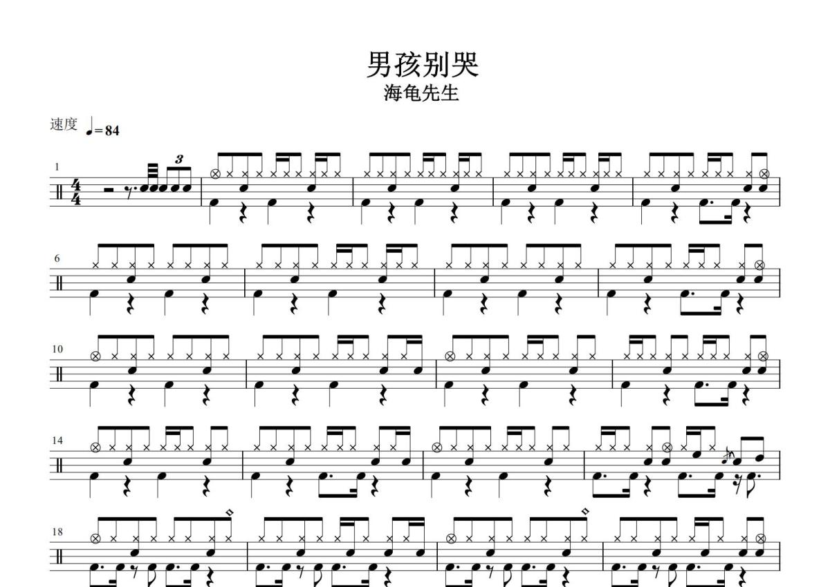 海龟先生《男孩别哭》鼓谱 - 架子鼓谱