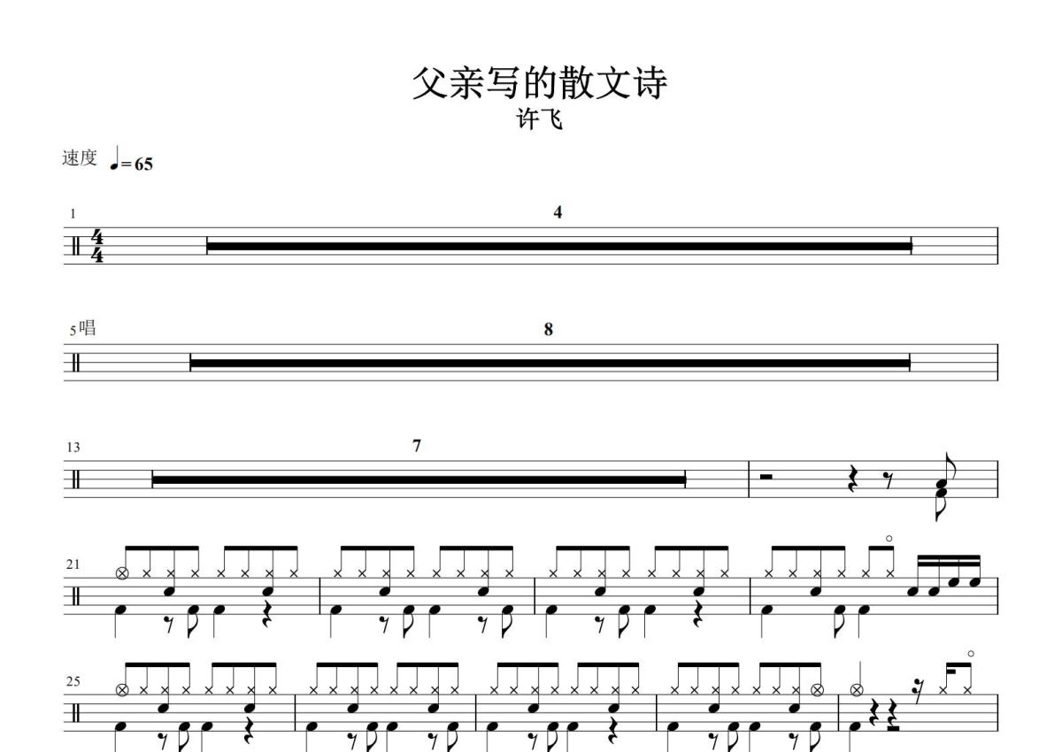 许飞《父亲写的散文诗》鼓谱 - 架子鼓谱