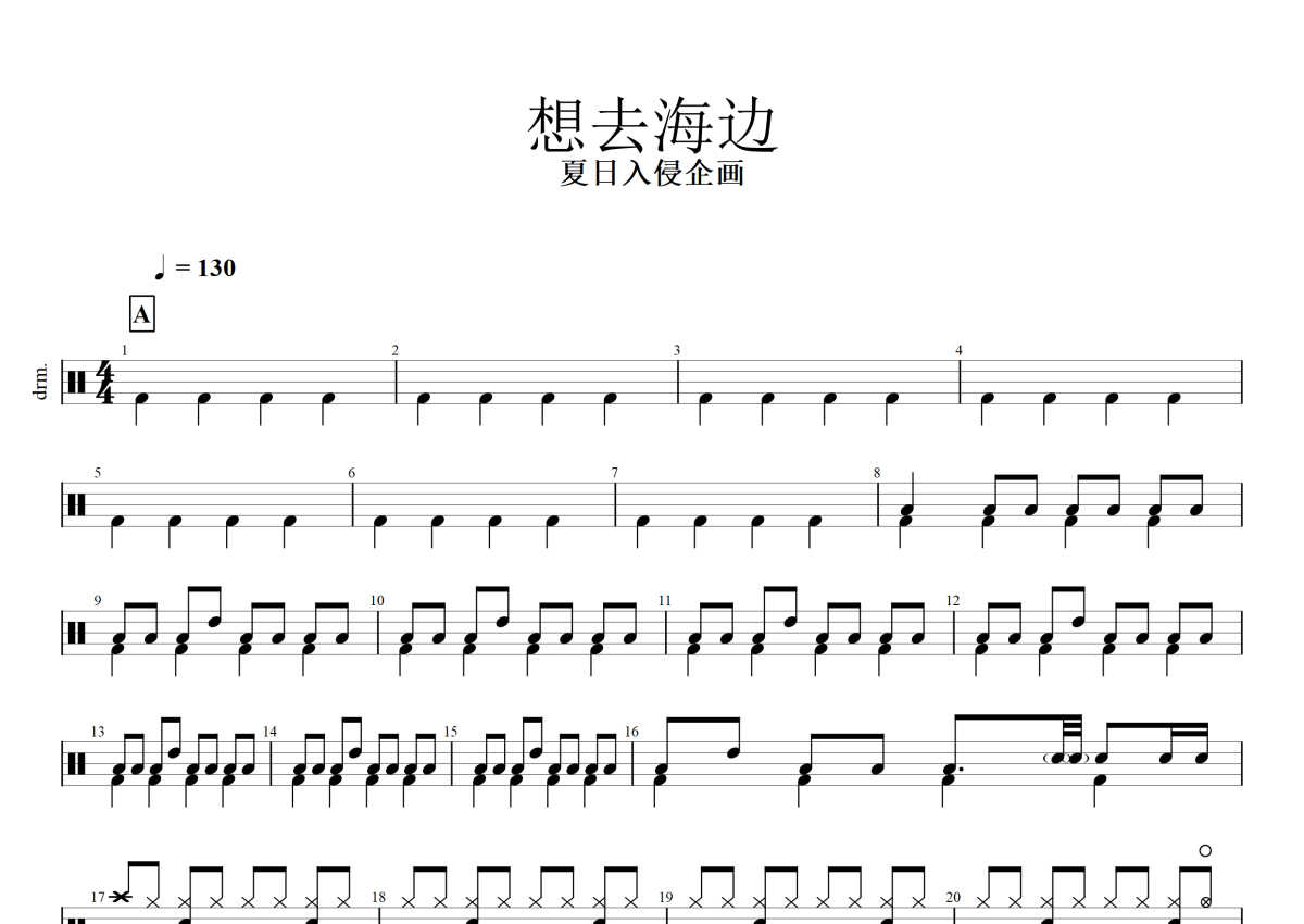 夏日入侵企画《想去海边》鼓谱 - 架子鼓谱
