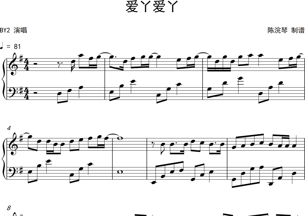 BY2《爱丫爱丫》钢琴谱
