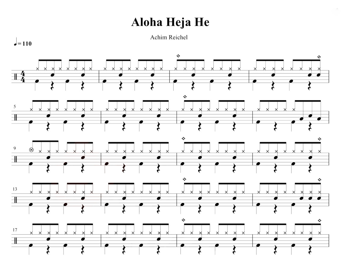 《Aloha Heja He》是Achim Reichel演唱的一首歌曲,这份鼓谱共有三张高清图谱,图谱由 @玉帝哥哥 编配上传,图谱使用五线谱编配,使用这份Aloha Heja He架子鼓谱,你将能够轻松地敲打出这首Achim Reichel的Aloha Heja He,快来尝试吧。《AlohaHejaHe》是德国作曲家阿奇姆·瑞切尔(AchimReichel)演唱的一首歌曲。收录于索尼音乐(SonyMusic)旗下的贝塔斯曼唱片(BertelsmannMusicGroup,BMG)公司1991年6月12日发行的专辑《MelancholieundSturmflut》中。