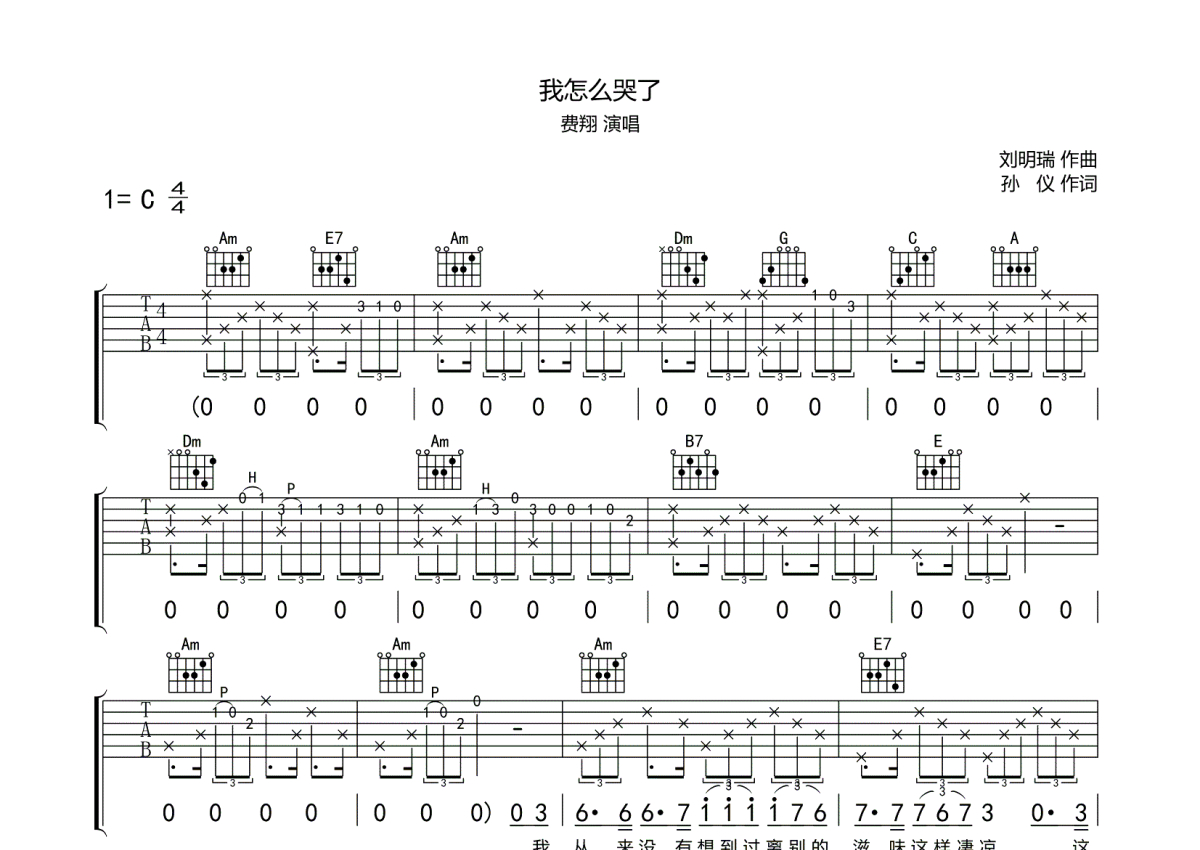 费翔《我怎么哭了》吉他谱 - C调弹唱六线谱