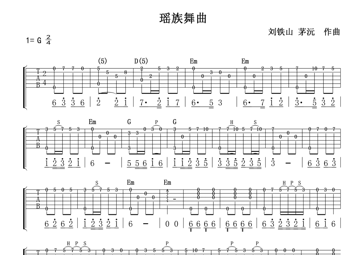 刘铁山《瑶族舞曲》吉他谱 - G调独奏六线谱