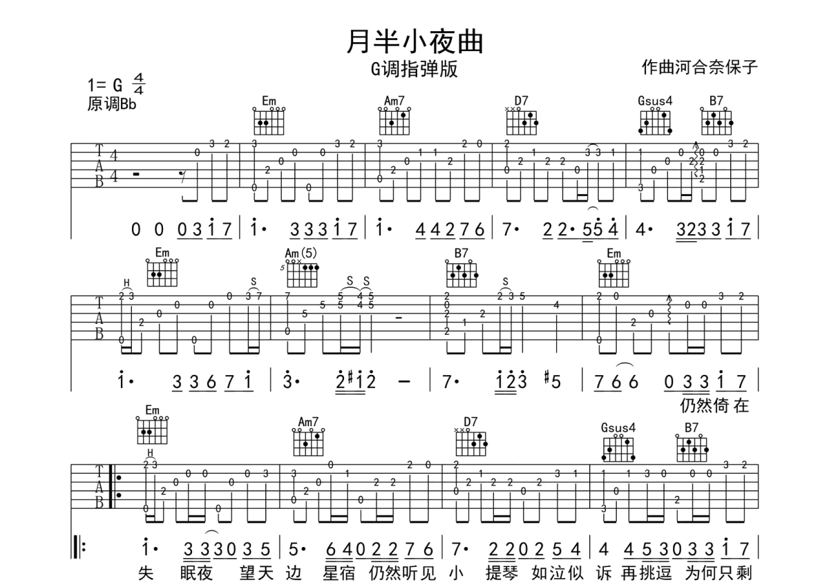 李克勤《月半小夜曲》吉他谱 - G调独奏六线谱