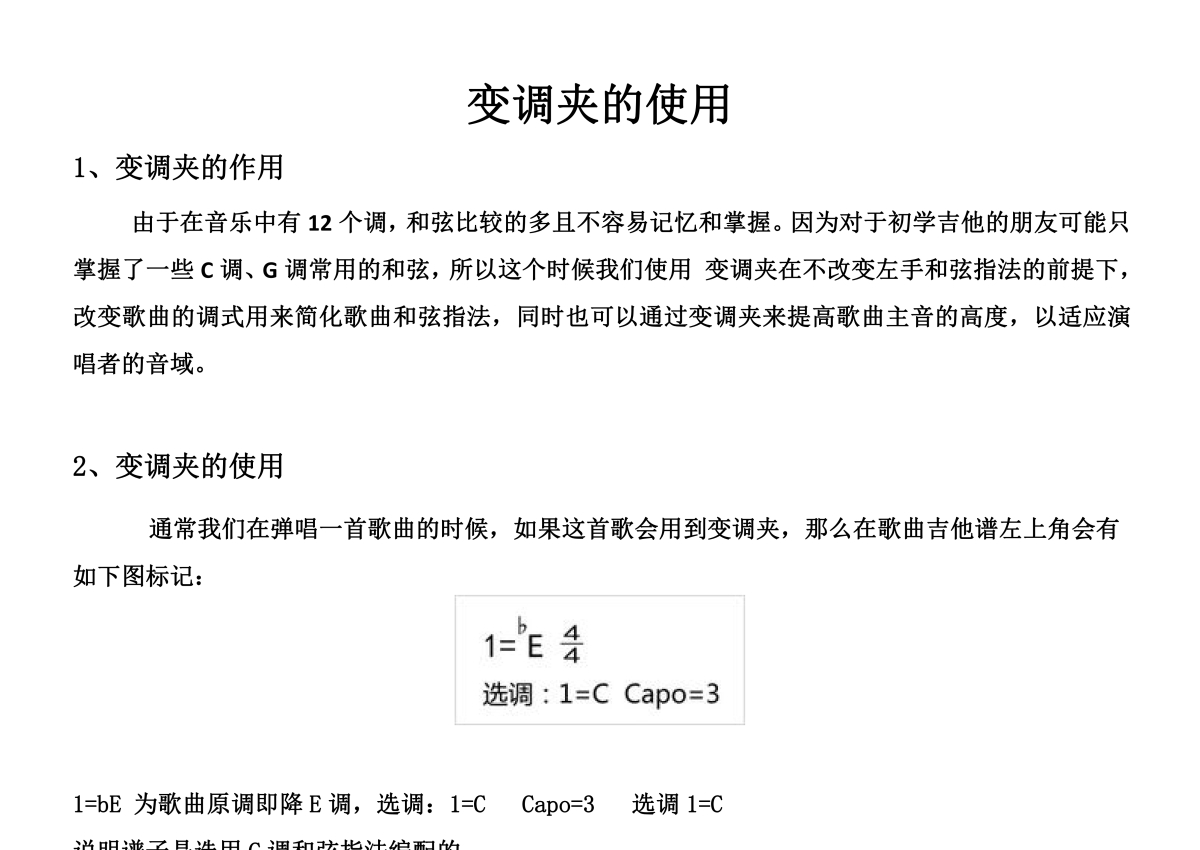 打谱啦吉他基础教程《变调夹的使用》吉他教程谱