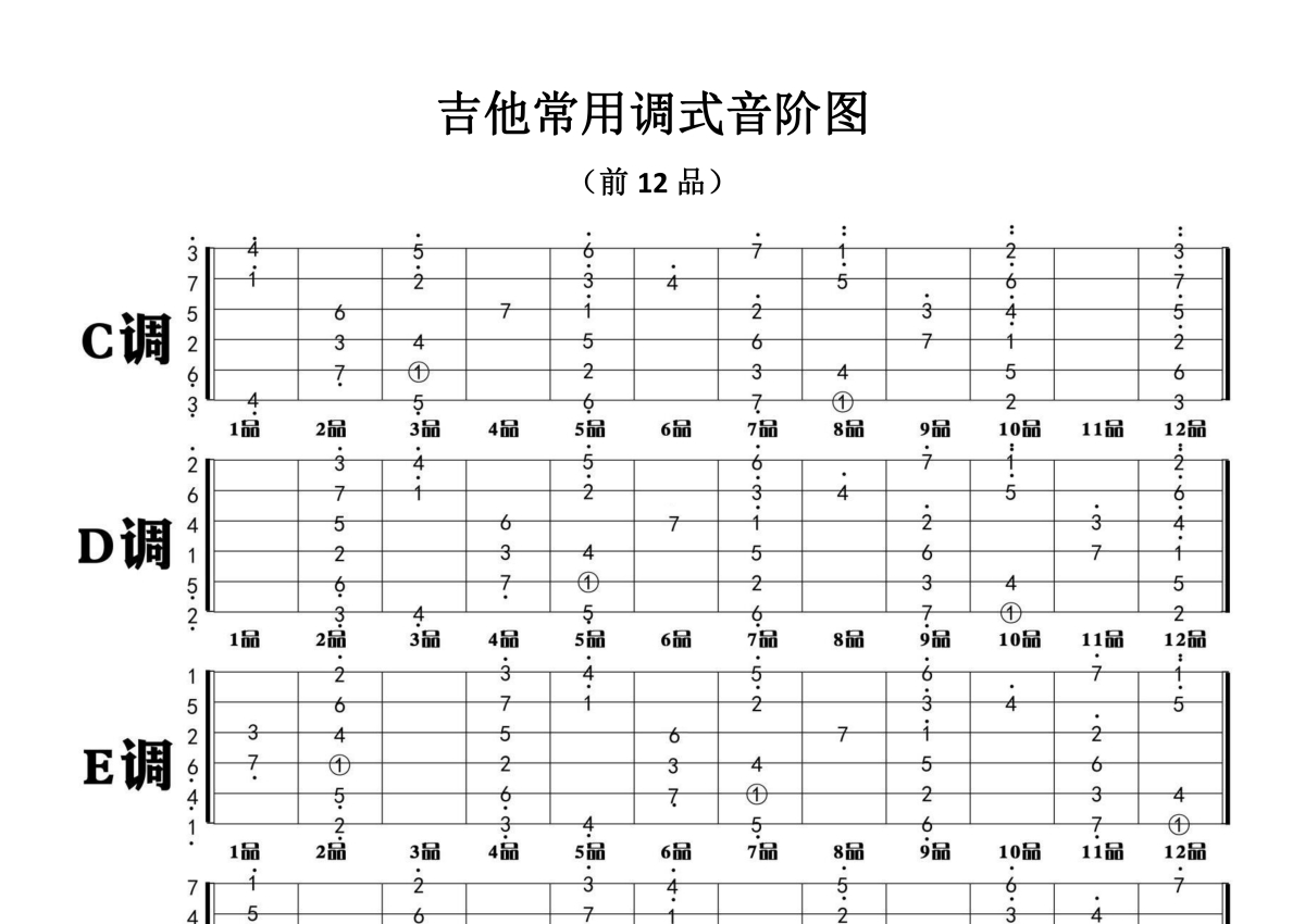 吉他常用调式音阶图吉他教程谱 - 打谱啦吉他基础教程