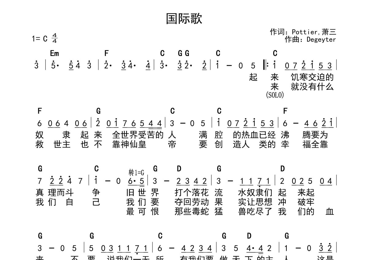群星《国际歌》简谱 - 带和弦级数