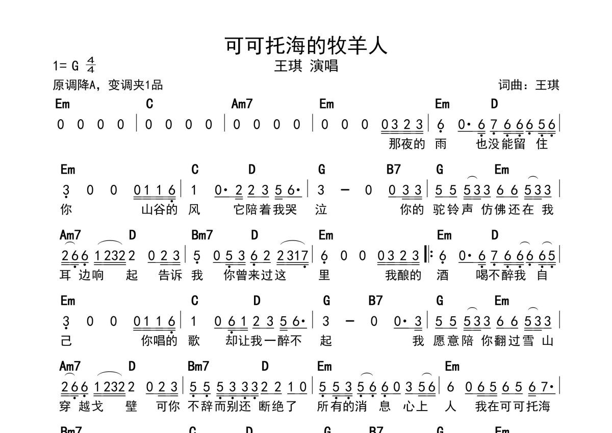 王琪《可可托海的牧羊人》简谱 - 带和弦级数