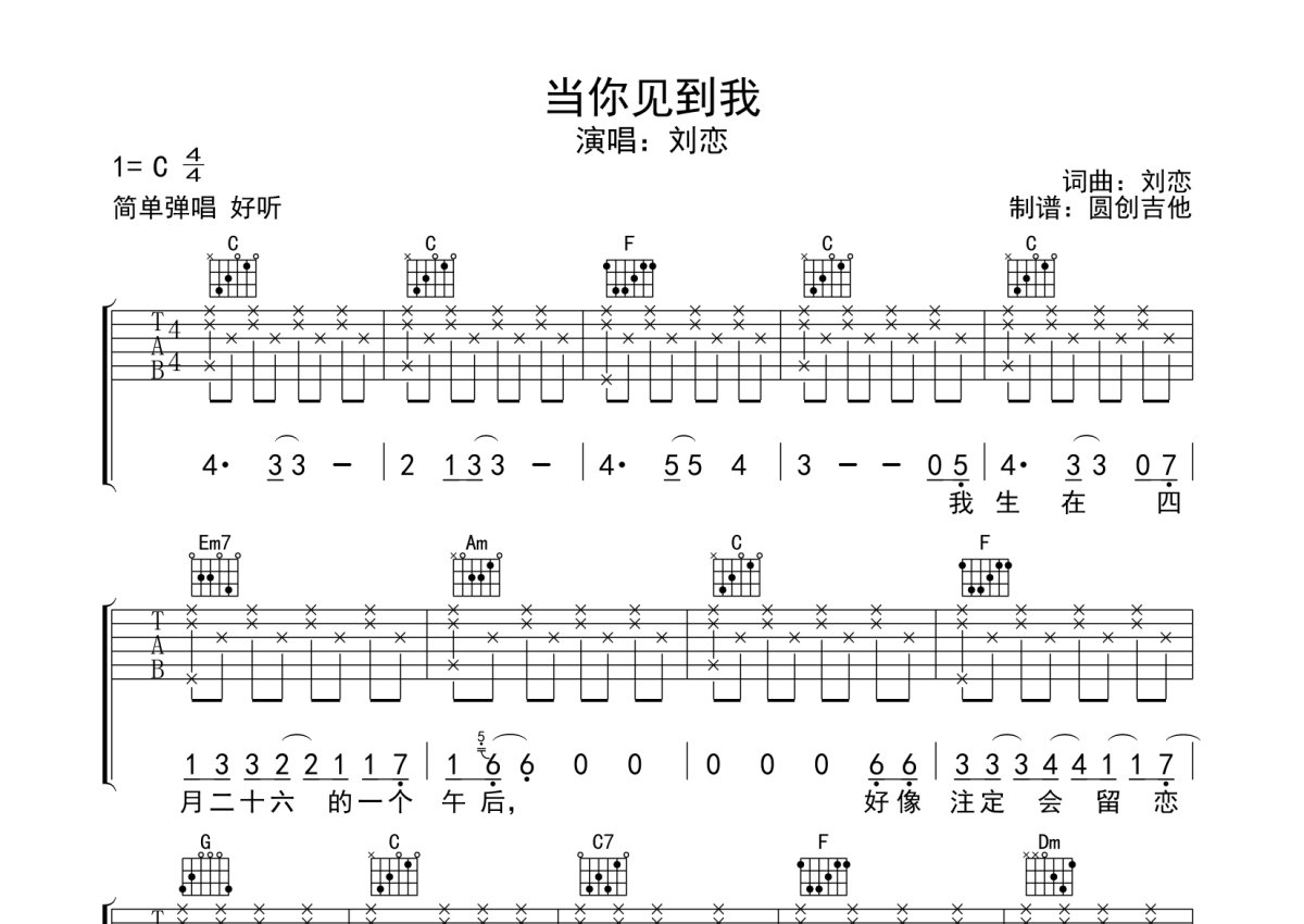 当你见到我《当你见到我》吉他谱 - C调弹唱六线谱