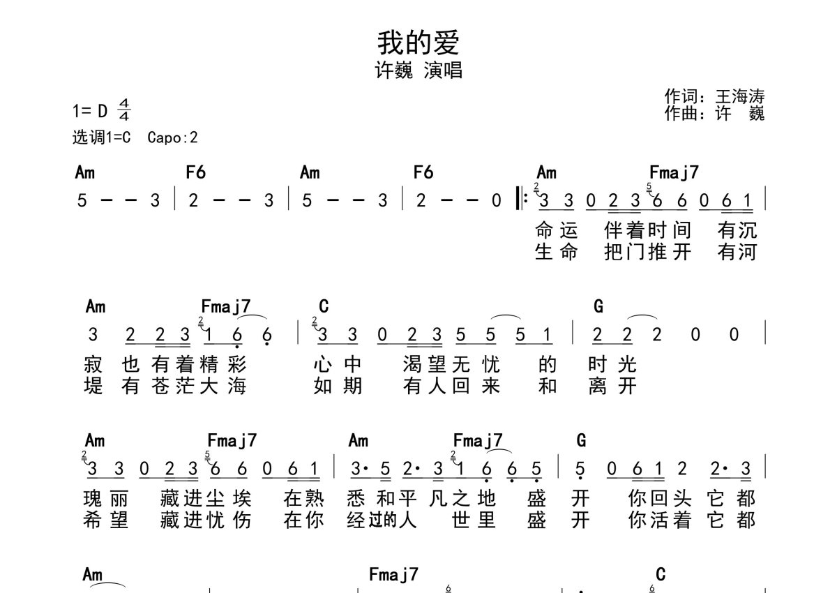 许巍《我的爱》简谱 - 带和弦级数