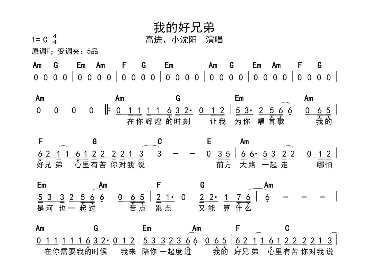 高进《我的好兄弟》简谱 - 带和弦级数