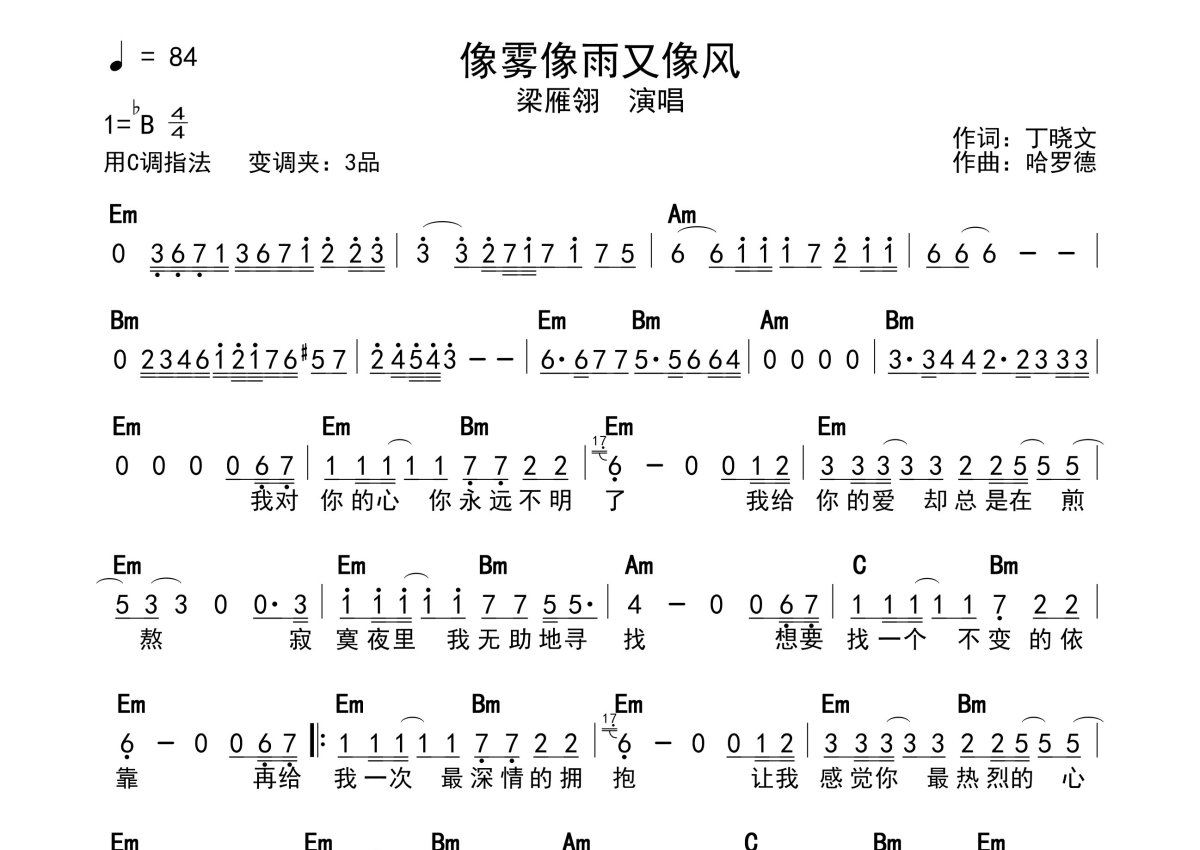梁雁翎《像雾像雨又像风》简谱 - 带和弦级数