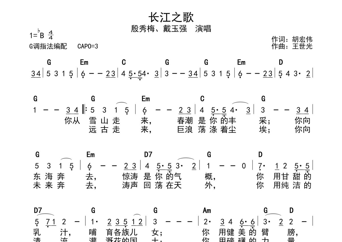 殷秀梅/戴玉强《长江之歌》简谱 - 带和弦级数