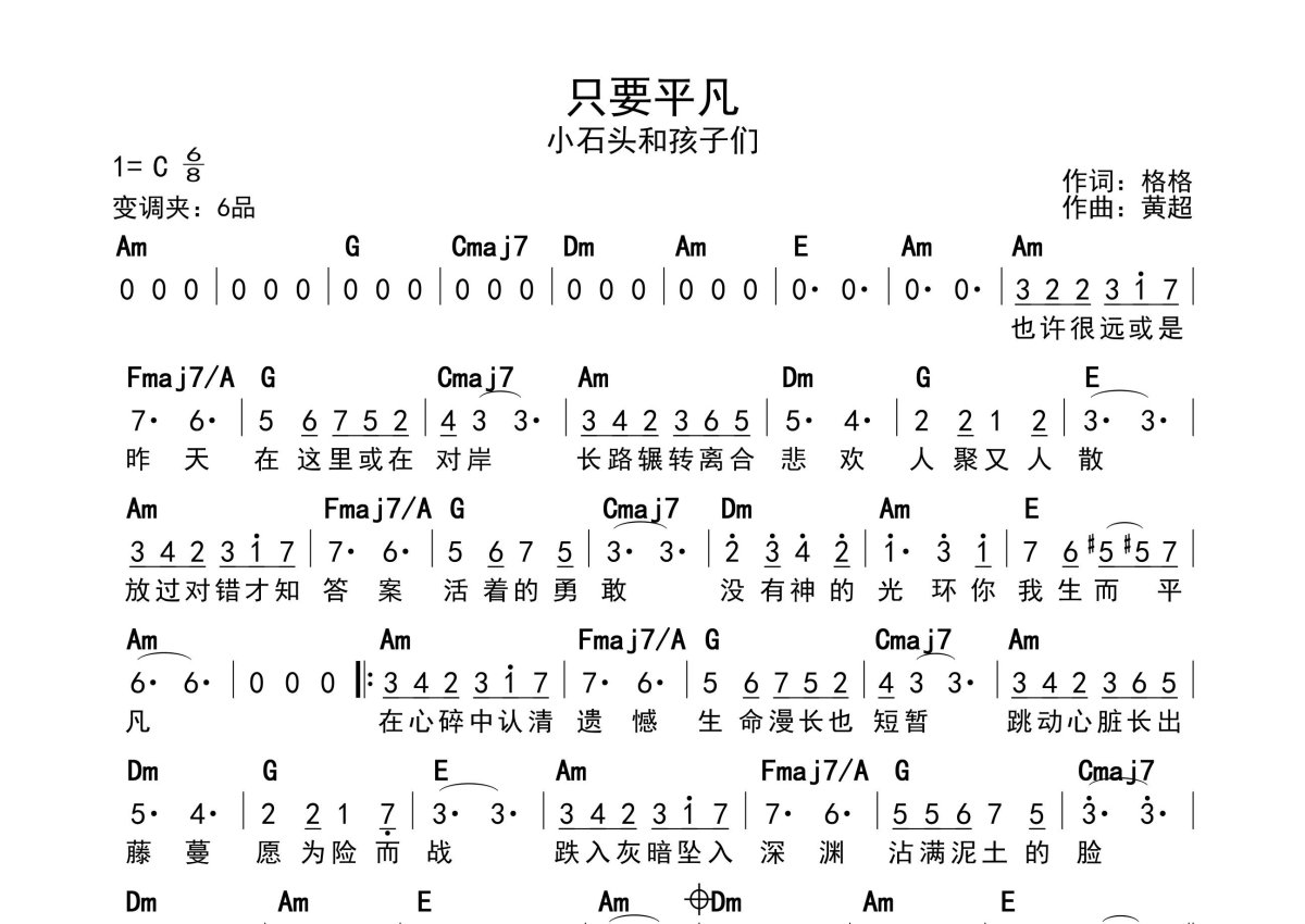 小石头和孩子们《只要平凡》简谱 - 带和弦级数