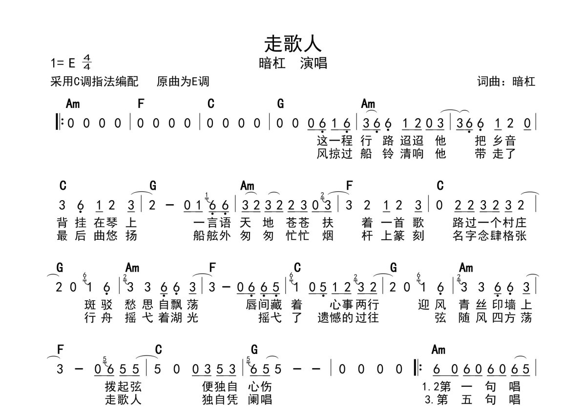 暗杠《走歌人》简谱 - 带和弦级数