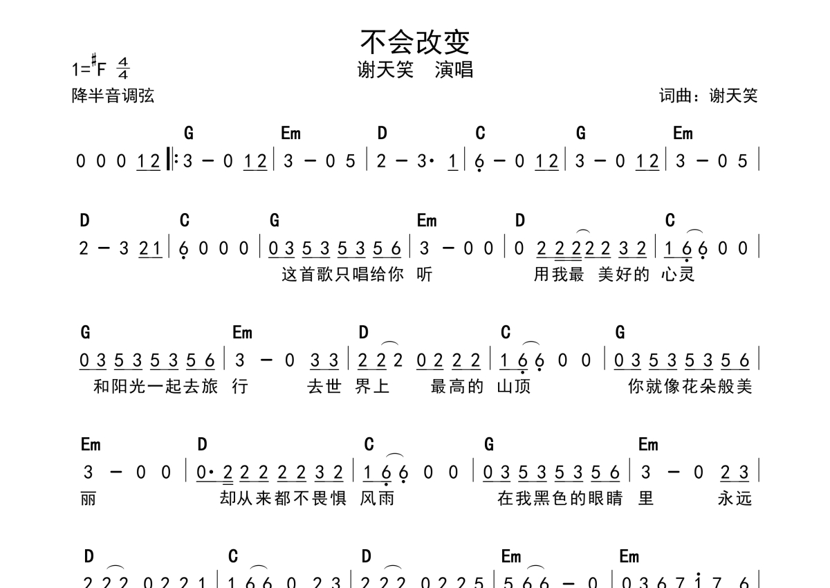 谢天笑《不会改变》简谱 - 带和弦级数
