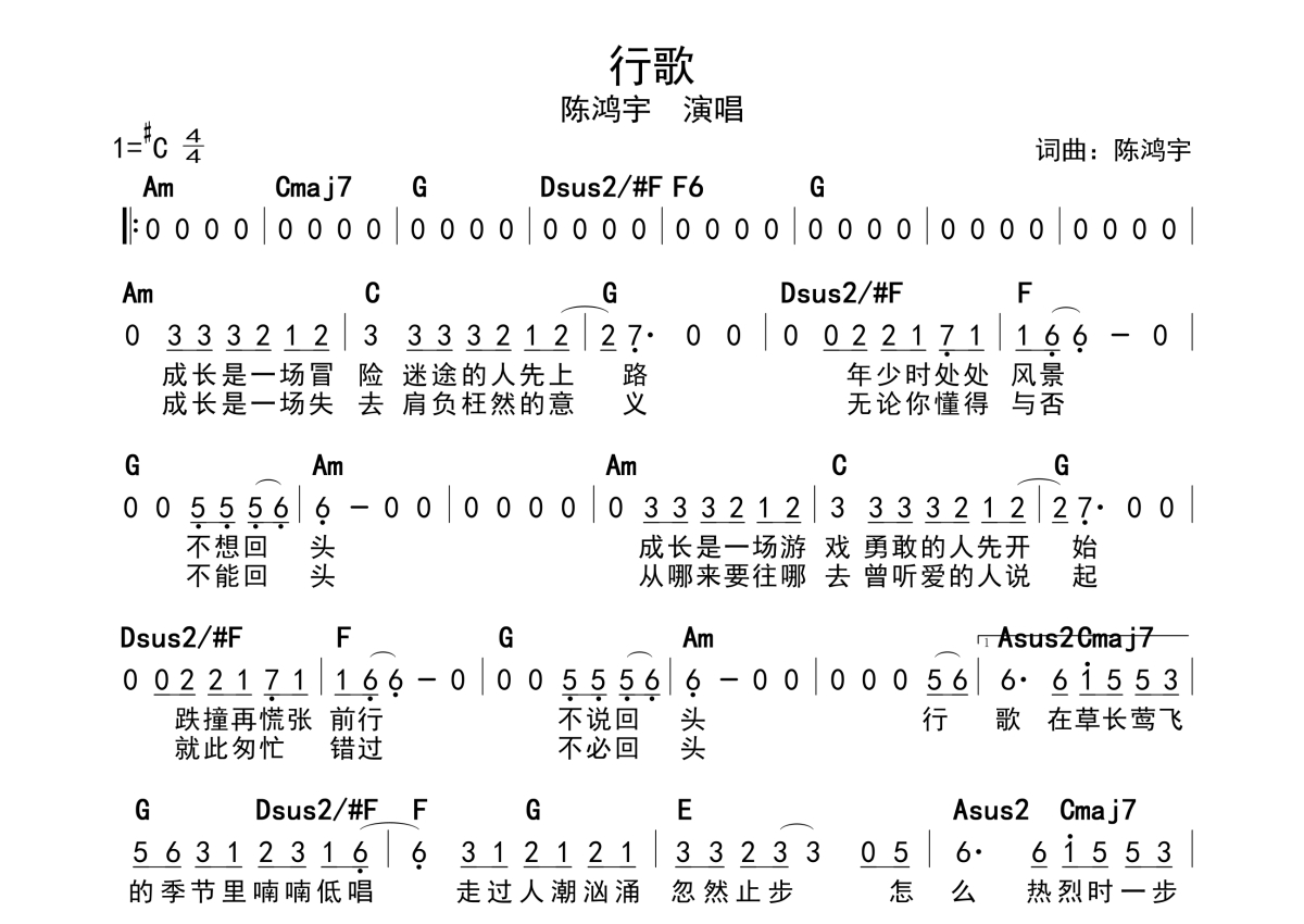 陈鸿宇《行歌》简谱 - 带和弦级数
