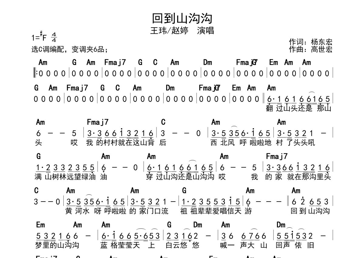 王玮、赵婷《回到山沟沟》简谱 - 带和弦级数
