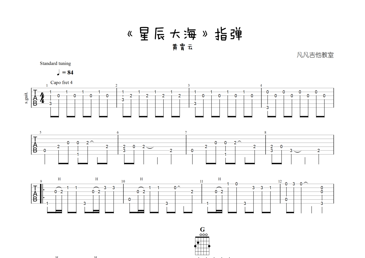 《星辰大海》是黄霄云演唱的一首歌曲,指弹简单版,本吉他谱采用的是C调指法编配,这份吉他谱共有一张高清图谱,图谱由 @凡凡吉他教室 编配上传,图谱使用六线谱编配,曲谱配备了相关的音频提供试听,使用这份星辰大海吉他谱,可以让你更加方便地掌握这首歌曲的演奏技巧,快来尝试吧。节奏做了简化,方便所有层次的朋友学习。可以试听音频。