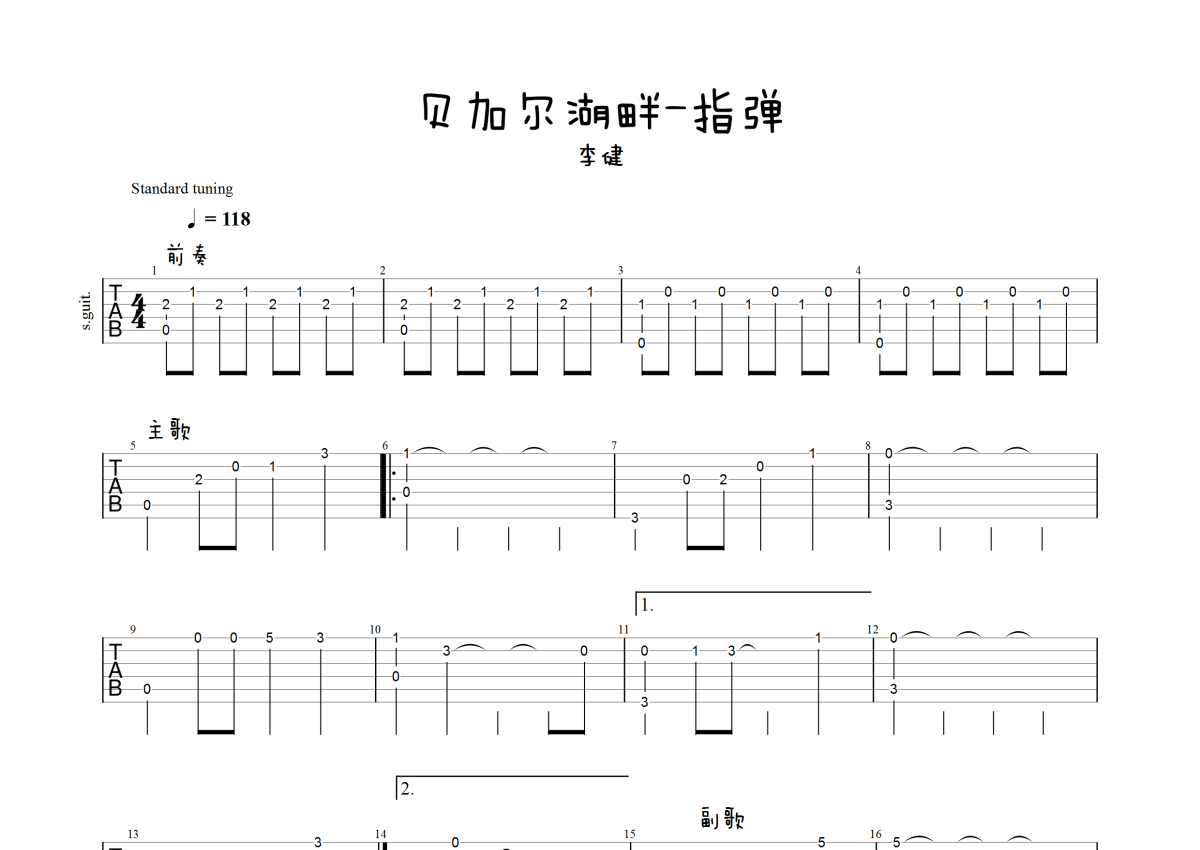 《贝加尔湖畔》是李健演唱的一首歌曲,指弹简单版,本吉他谱采用的是C调指法编配,这份吉他谱共有两张高清图谱,图谱由 @凡凡吉他教室 编配上传,图谱使用六线谱编配,曲谱配备了相关的音频提供试听,使用这份贝加尔湖畔吉他谱,可以让你更加方便地掌握这首歌曲的演奏技巧,快来尝试吧。节奏做了简化,方便所有层次的朋友学习。可以试听音频。