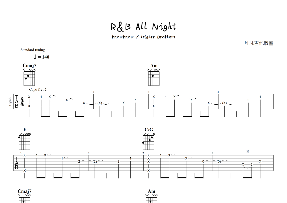 KnowKnow《R&B All Night》吉他谱 - C调弹唱六线谱 - 原版