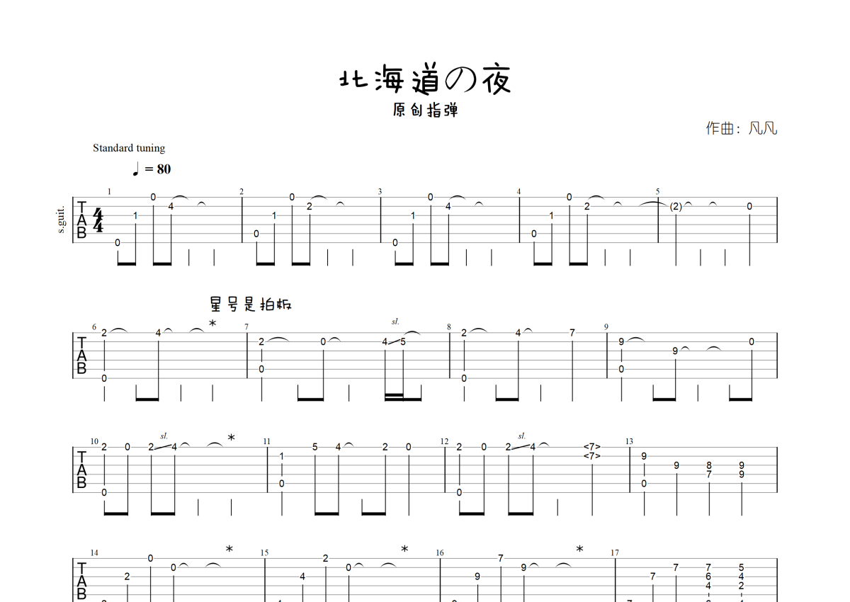 凡凡《北海道の夜》吉他谱 - E调独奏六线谱 - 原创指弹