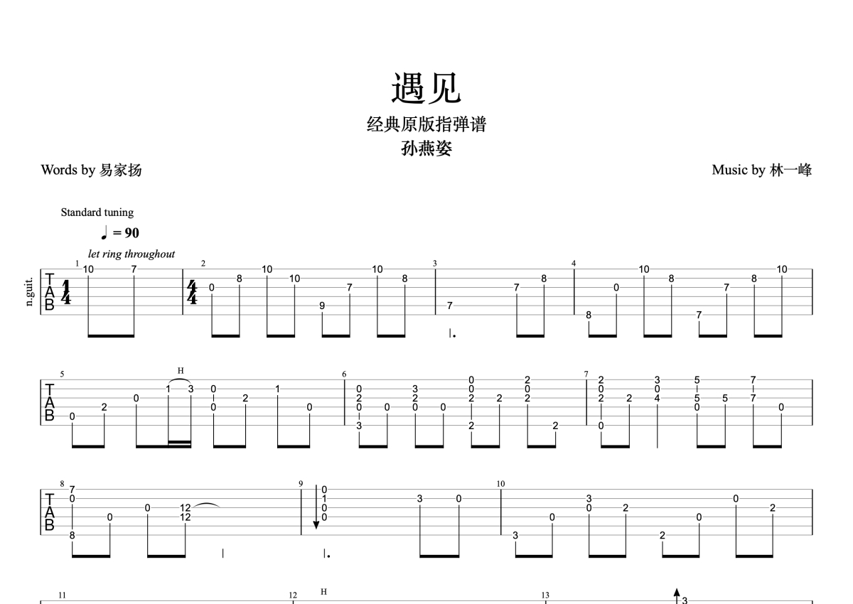 孙燕姿《遇见》吉他谱 - G调独奏六线谱