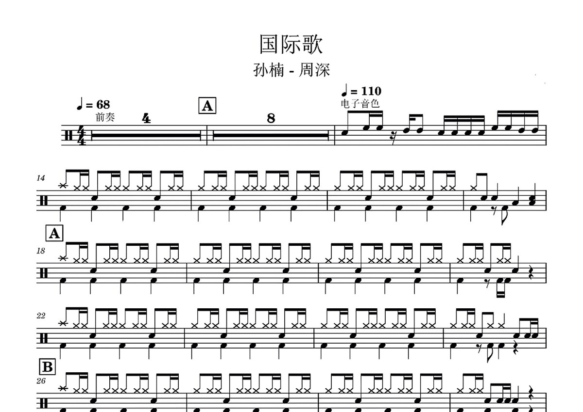 孙楠、周深《国际歌》鼓谱 - 架子鼓谱