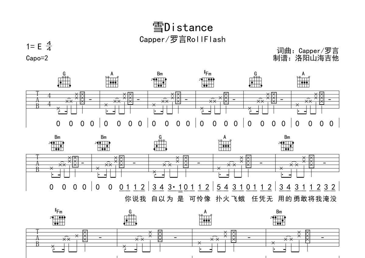 罗言RollFlash/Capper《雪Distance》吉他谱 - D调弹唱六线谱